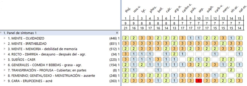 Un ejemplo notable de la efectividad de la homeopatía en el tratamiento del SOP es el uso de Thuja occidentalis. Este remedio ha mostrado resultados significativos en el manejo de síntomas como la amenorrea (ausencia de menstruación) y la leucorrea acuosa (flujo vaginal anormal), ambos indicadores de desequilibrios hormonales en mujeres jóvenes. Se reporta el caso de una mujer de 27 años que, además de presentar los síntomas mencionados, sufría de acné leve, pigmentación oscura en el cuello, pérdida de peso e irregularidad menstrual, todos asociados con el diagnóstico de SOP. Esta paciente había seguido tratamientos hormonales intermitentes sin obtener mejoras significativas. Inicialmente, se le prescribió Thuja occidentalis 200C debido a sus síntomas predominantes (Figura 2); pero al no observarse una mejoría satisfactoria después de cuatro meses, se incrementó la potencia a 1000C.