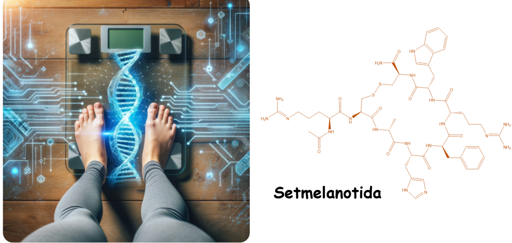 El primero, llamado setmelanotida, un agonista del receptor de la melanocortina (MCR4), en pacientes con deficiencia del receptor de la leptina. fue aprobado en 2020. Se utiliza en personas que tienen deficiencias genéticas que les causan un apetito muy alto y obesidad severa desde la infancia. Este medicamento, que se inyecta bajo la piel, ayuda a reducir el hambre, a disminuir la cantidad de comida que se consume y a aumentar el gasto de energía. En estudios, se observó que la mayoría de los pacientes que usaron setmelanotida lograron perder al menos un 10% de su peso en aproximadamente un año. El medicamento es bien tolerado, aunque algunos pacientes experimentaron reacciones en el lugar de la inyección y cambios en la pigmentación de la piel.