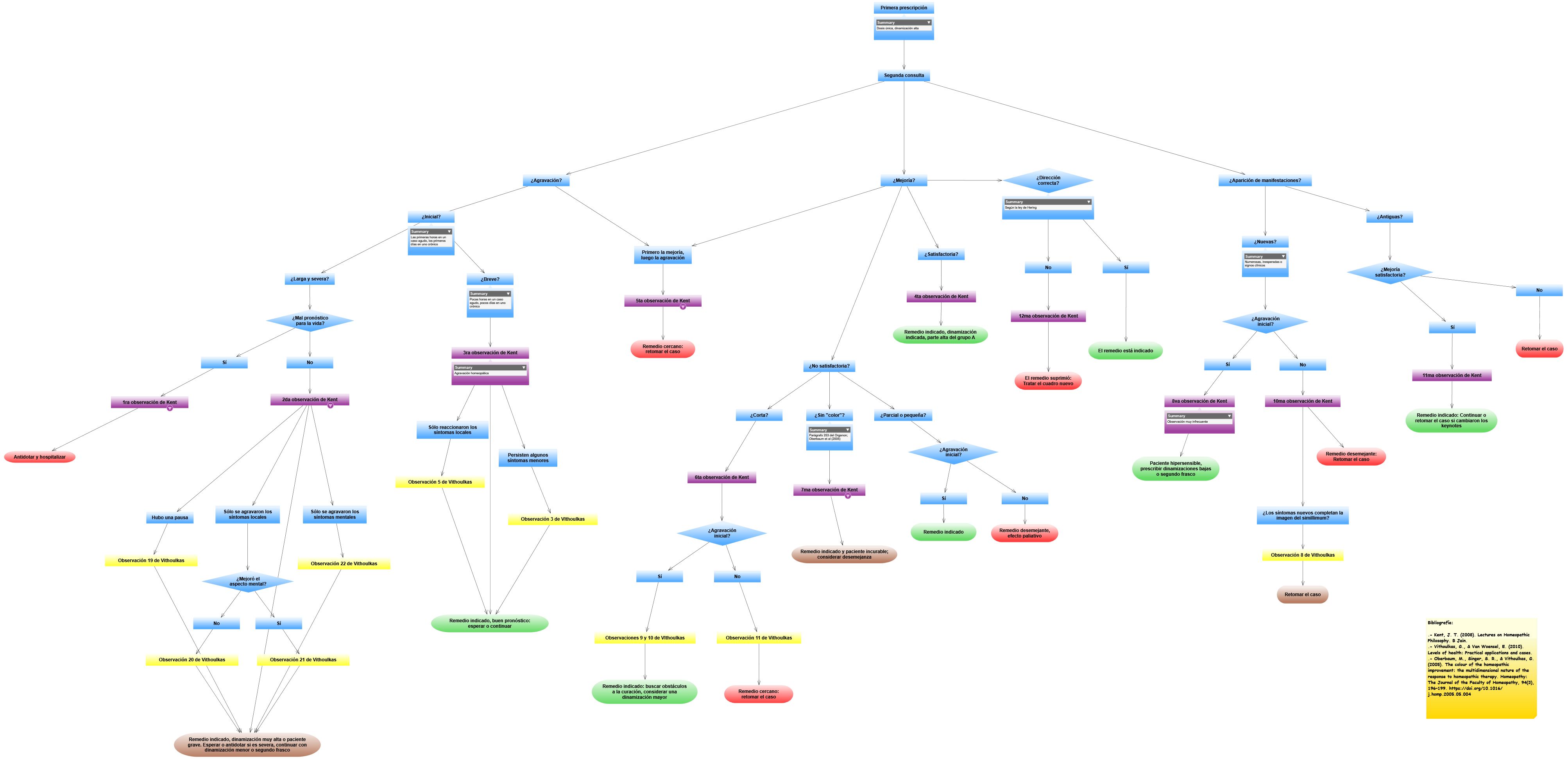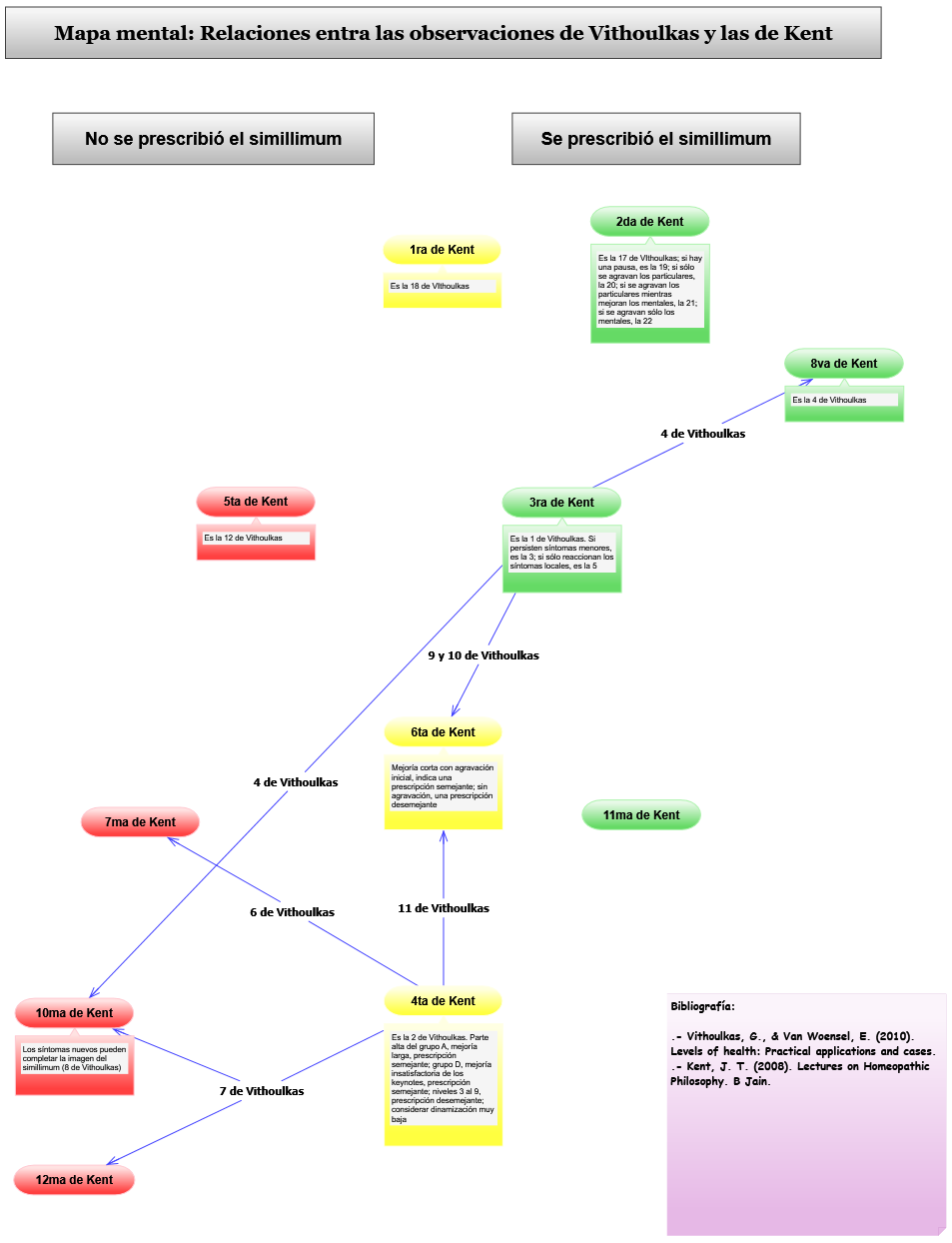 El propósito de este breve artículo, además del placer de hablarle, fino lector, es compartir con usted y especialmente con los estudiantes de nuestro arte y nuestra ciencia, dos imágenes: un mapa conceptual en el que relacionamos las observaciones de Kent y las de VIthoulkas y un algoritmo cuyas líneas pueden seguirse para interpretar la evolución de un caso a la luz del Dr. Kent y el Prof. Vithoulkas.